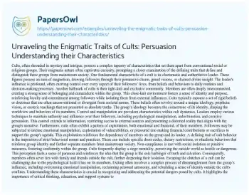 Unraveling the Enigmatic Traits of Cults: Persuasion Understanding their Characteristics. (2023, Dec 01). Retrieved from https://hub.papersowl.com/examples/unraveling-the-enigmatic-traits-of-cults-persuasion-understanding-their-characteristics/