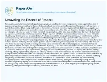 Unraveling the Essence of Respect. (2024, Feb 01). Retrieved from https://hub.papersowl.com/examples/unraveling-the-essence-of-respect/