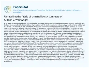 Unraveling the fabric of criminal law: A summary of Gideon v. Wainwright. (2023, Nov 24). Retrieved from https://hub.papersowl.com/examples/unraveling-the-fabric-of-criminal-law-a-summary-of-gideon-v-wainwright/