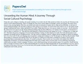 Unraveling the Human Mind: A Journey Through Social Cultural Psychology. (2023, Dec 28). Retrieved from https://hub.papersowl.com/examples/unraveling-the-human-mind-a-journey-through-social-cultural-psychology/
