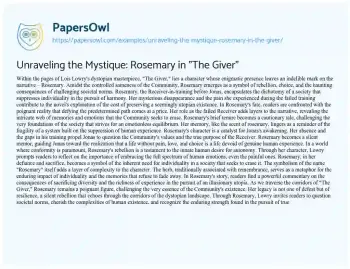 Unraveling the Mystique: Rosemary in "The Giver". (2024, Mar 02). Retrieved from https://hub.papersowl.com/examples/unraveling-the-mystique-rosemary-in-the-giver/