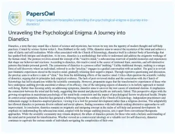Unraveling the Psychological Enigma: A Journey into Dianetics. (2024, Jan 16). Retrieved from https://hub.papersowl.com/examples/unraveling-the-psychological-enigma-a-journey-into-dianetics/