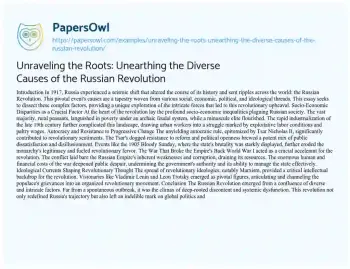 Unraveling the Roots: Unearthing the Diverse Causes of the Russian Revolution. (2023, Dec 01). Retrieved from https://hub.papersowl.com/examples/unraveling-the-roots-unearthing-the-diverse-causes-of-the-russian-revolution/