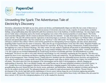 Unraveling the Spark: The Adventurous Tale of Electricity’s Discovery. (2023, Dec 04). Retrieved from https://hub.papersowl.com/examples/unraveling-the-spark-the-adventurous-tale-of-electricitys-discovery/