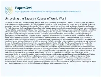 Unraveling the Tapestry: Causes of World War I. (2024, Feb 01). Retrieved from https://hub.papersowl.com/examples/unraveling-the-tapestry-causes-of-world-war-i/