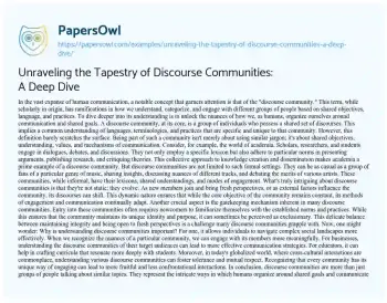 Unraveling the Tapestry of Discourse Communities: A Deep Dive. (2023, Oct 10). Retrieved from https://hub.papersowl.com/examples/unraveling-the-tapestry-of-discourse-communities-a-deep-dive/