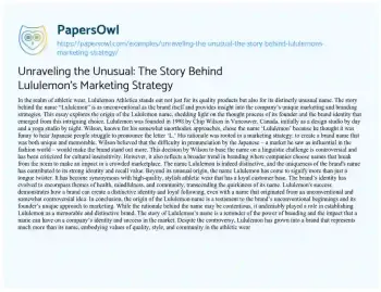 This essay delves into the intriguing backstory of the Lululemon brand name, a well-known entity in the athletic wear industry. It explores the unconventional reasoning behind the founder, Chip Wilson’s, choice of the name “Lululemon.” Initially, Wilson’s choice was influenced by his belief that the name’s challenging pronunciation for Japanese speakers would make the brand stand out in the fashion world. The essay discusses the controversial nature of this decision, highlighting the cultural insensitivity inherent in Wilson’s rationale. However, it also examines how, despite its unusual origins, the Lululemon name has evolved to become synonymous with high-quality, stylish athletic wear, gaining significant brand identity and customer loyalty. The essay emphasizes the power of branding and how a unique name can impact a company’s market success and public perception. It concludes by reflecting on Lululemon’s growth beyond its name, representing values of quality, style, and community in the athletic wear industry, despite the initial controversy surrounding its naming. You can also find more related free essay samples at PapersOwl about Marketing.