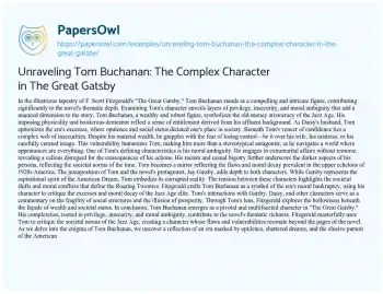 Unraveling Tom Buchanan: The Complex Character in The Great Gatsby. (2024, Mar 01). Retrieved from https://hub.papersowl.com/examples/unraveling-tom-buchanan-the-complex-character-in-the-great-gatsby/
