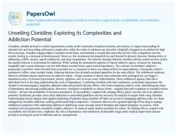 Unveiling Clonidine: Exploring its Complexities and Addiction Potential. (2023, Dec 22). Retrieved from https://hub.papersowl.com/examples/unveiling-clonidine-exploring-its-complexities-and-addiction-potential/