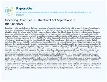 Unveiling David Poe Jr.: Theatrical Art Aspirations in the Shadows. (2023, Dec 22). Retrieved from https://hub.papersowl.com/examples/unveiling-david-poe-jr-theatrical-art-aspirations-in-the-shadows/