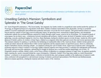 Unveiling Gatsby's Mansion: Symbolism and Splendor in 'The Great Gatsby'. (2023, Dec 22). Retrieved from https://hub.papersowl.com/examples/unveiling-gatsbys-mansion-symbolism-and-splendor-in-the-great-gatsby/