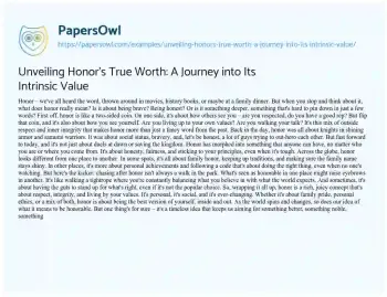 Unveiling Honor's True Worth: A Journey into Its Intrinsic Value. (2024, Feb 01). Retrieved from https://hub.papersowl.com/examples/unveiling-honors-true-worth-a-journey-into-its-intrinsic-value/