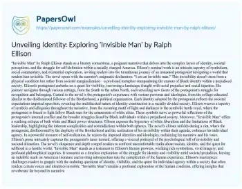 Unveiling Identity: Exploring 'Invisible Man' by Ralph Ellison. (2023, Dec 22). Retrieved from https://hub.papersowl.com/examples/unveiling-identity-exploring-invisible-man-by-ralph-ellison/
