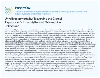 Unveiling Immortality: Traversing the Eternal Tapestry in Cultural Myths and Philosophical Reflections. (2024, Mar 01). Retrieved from https://hub.papersowl.com/examples/unveiling-immortality-traversing-the-eternal-tapestry-in-cultural-myths-and-philosophical-reflections/