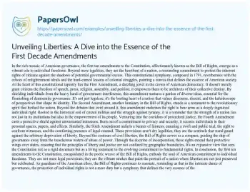 Unveiling Liberties: A Dive into the Essence of the First Decade Amendments. (2024, Mar 02). Retrieved from https://hub.papersowl.com/examples/unveiling-liberties-a-dive-into-the-essence-of-the-first-decade-amendments/