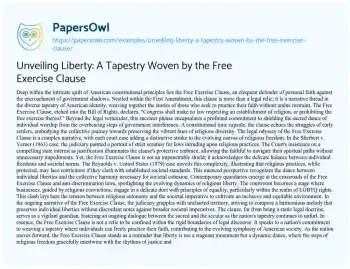 Unveiling Liberty: A Tapestry Woven by the Free Exercise Clause. (2024, Jan 26). Retrieved from https://hub.papersowl.com/examples/unveiling-liberty-a-tapestry-woven-by-the-free-exercise-clause/