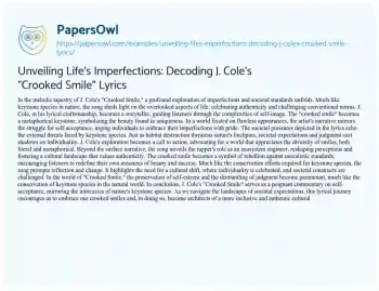Unveiling Life's Imperfections: Decoding J. Cole's "Crooked Smile" Lyrics. (2024, Feb 27). Retrieved from https://hub.papersowl.com/examples/unveiling-lifes-imperfections-decoding-j-coles-crooked-smile-lyrics/