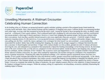 Unveiling Moments: A Walmart Encounter Celebrating Human Connection. (2023, Dec 28). Retrieved from https://hub.papersowl.com/examples/unveiling-moments-a-walmart-encounter-celebrating-human-connection/