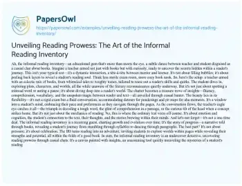 Unveiling Reading Prowess: The Art of the Informal Reading Inventory. (2023, Dec 22). Retrieved from https://hub.papersowl.com/examples/unveiling-reading-prowess-the-art-of-the-informal-reading-inventory/