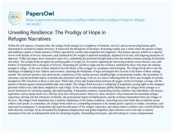 Unveiling Resilience: The Prodigy of Hope in Refugee Narratives. (2024, Jan 26). Retrieved from https://hub.papersowl.com/examples/unveiling-resilience-the-prodigy-of-hope-in-refugee-narratives/