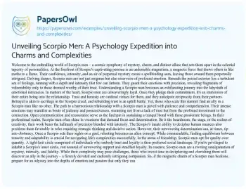 Unveiling Scorpio Men: A Psychology Expedition into Charms and Complexities. (2024, Jan 26). Retrieved from https://hub.papersowl.com/examples/unveiling-scorpio-men-a-psychology-expedition-into-charms-and-complexities/