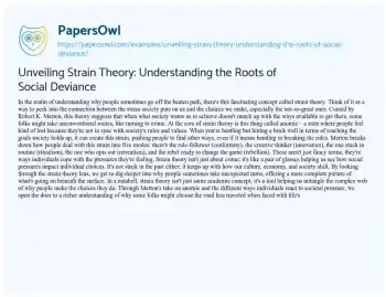 Unveiling Strain Theory: Understanding the Roots of Social Deviance. (2024, Feb 01). Retrieved from https://hub.papersowl.com/examples/unveiling-strain-theory-understanding-the-roots-of-social-deviance/