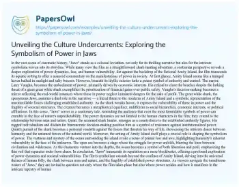 Unveiling the Culture Undercurrents: Exploring the Symbolism of Power in Jaws. (2023, Dec 22). Retrieved from https://hub.papersowl.com/examples/unveiling-the-culture-undercurrents-exploring-the-symbolism-of-power-in-jaws/