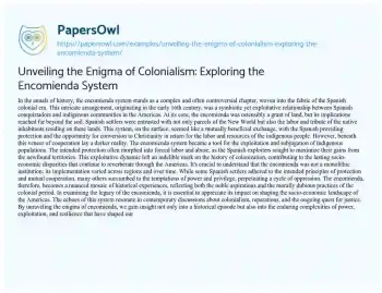 Unveiling the Enigma of Colonialism: Exploring the Encomienda System. (2024, Feb 01). Retrieved from https://hub.papersowl.com/examples/unveiling-the-enigma-of-colonialism-exploring-the-encomienda-system/