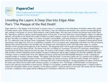 Unveiling the Layers: A Deep Dive into Edgar Allan Poe's 'The Masque of the Red Death'. (2024, Feb 01). Retrieved from https://hub.papersowl.com/examples/unveiling-the-layers-a-deep-dive-into-edgar-allan-poes-the-masque-of-the-red-death/