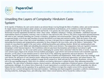 Unveiling the Layers of Complexity: Hinduism Caste System. (2023, Nov 24). Retrieved from https://hub.papersowl.com/examples/unveiling-the-layers-of-complexity-hinduism-caste-system/