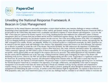 Unveiling the National Response Framework: A Beacon in Crisis Management. (2023, Oct 16). Retrieved from https://hub.papersowl.com/examples/unveiling-the-national-response-framework-a-beacon-in-crisis-management/
