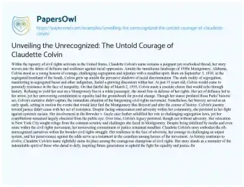 Unveiling the Unrecognized: The Untold Courage of Claudette Colvin. (2024, Jan 09). Retrieved from https://hub.papersowl.com/examples/unveiling-the-unrecognized-the-untold-courage-of-claudette-colvin/