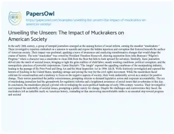 Unveiling the Unseen: The Impact of Muckrakers on American Society. (2024, Jan 09). Retrieved from https://hub.papersowl.com/examples/unveiling-the-unseen-the-impact-of-muckrakers-on-american-society/