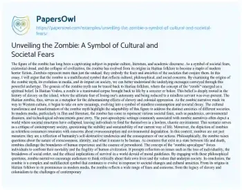 Unveiling the Zombie: A Symbol of Cultural and Societal Fears. (2025, Mar 28). Retrieved from https://hub.papersowl.com/examples/unveiling-the-zombie-a-symbol-of-cultural-and-societal-fears/