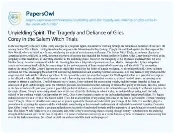 Unyielding Spirit: The Tragedy and Defiance of Giles Corey in the Salem Witch Trials. (2024, Jan 16). Retrieved from https://hub.papersowl.com/examples/unyielding-spirit-the-tragedy-and-defiance-of-giles-corey-in-the-salem-witch-trials/