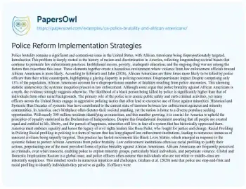 Police Reform Implementation Strategies. (2020, Apr 17). Retrieved from https://hub.papersowl.com/examples/us-police-brutality-and-african-americans/