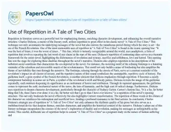 Use of Repetition in A Tale of Two Cities
