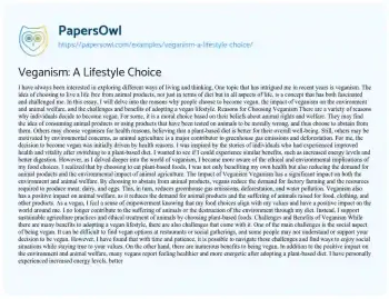 Veganism: A Lifestyle Choice. (2025, Oct 25). Retrieved from https://hub.papersowl.com/examples/veganism-a-lifestyle-choice/