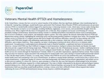 Veterans Mental Health (PTSD) and Homelessness. (2025, Mar 31). Retrieved from https://hub.papersowl.com/examples/veterans-mental-health-ptsd-and-homelessness/