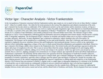 Victor Igor : Character Analysis : Victor Frankenstein. (2024, Apr 29). Retrieved from https://hub.papersowl.com/examples/victor-igor-character-analysis-victor-frankenstein/