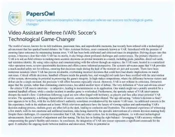 Video Assistant Referee (VAR): Soccer's Technological Game-Changer. (2023, Oct 16). Retrieved from https://hub.papersowl.com/examples/video-assistant-referee-var-soccers-technological-game-changer/