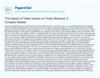The Impact of Video Games on Youth Behavior: A Complex Debate. (2020, Jan 12). Retrieved from https://hub.papersowl.com/examples/violence-and-video-games/