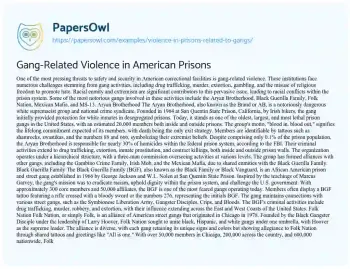 Gang-Related Violence in American Prisons. (2019, May 29). Retrieved from https://hub.papersowl.com/examples/violence-in-prisons-related-to-gangs/
