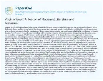 Virginia Woolf: A Beacon of Modernist Literature and Feminism. (2024, Mar 02). Retrieved from https://hub.papersowl.com/examples/virginia-woolf-a-beacon-of-modernist-literature-and-feminism/