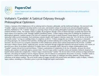 Voltaire's 'Candide': A Satirical Odyssey through Philosophical Optimism. (2023, Dec 28). Retrieved from https://hub.papersowl.com/examples/voltaires-candide-a-satirical-odyssey-through-philosophical-optimism/