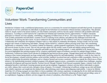 Volunteer Work: Transforming Communities and Lives. (2024, Dec 27). Retrieved from https://hub.papersowl.com/examples/volunteer-work-transforming-communities-and-lives/