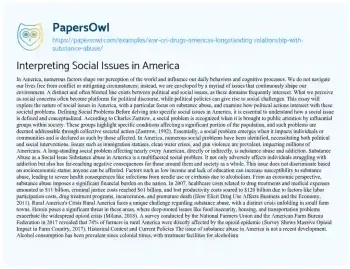 This essay will explore the nature of social issues in America, with a particular focus on substance abuse, and examine how political actions intersect with these societal problems.