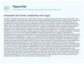 Alexander the Great: Leadership and Legac. (2019, Feb 18). Retrieved from https://hub.papersowl.com/examples/was-alexander-the-great-really-great/
