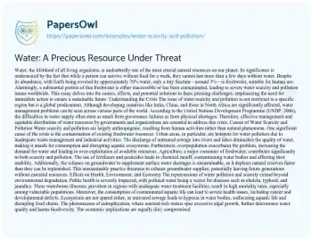 Water: A Precious Resource Under Threat. (2019, Apr 18). Retrieved from https://hub.papersowl.com/examples/water-scarcity-and-pollution/