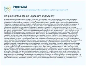 Religion's Influence on Capitalism and Society. (2021, Apr 15). Retrieved from https://hub.papersowl.com/examples/weber-exploitation-capitalism-protestantism/